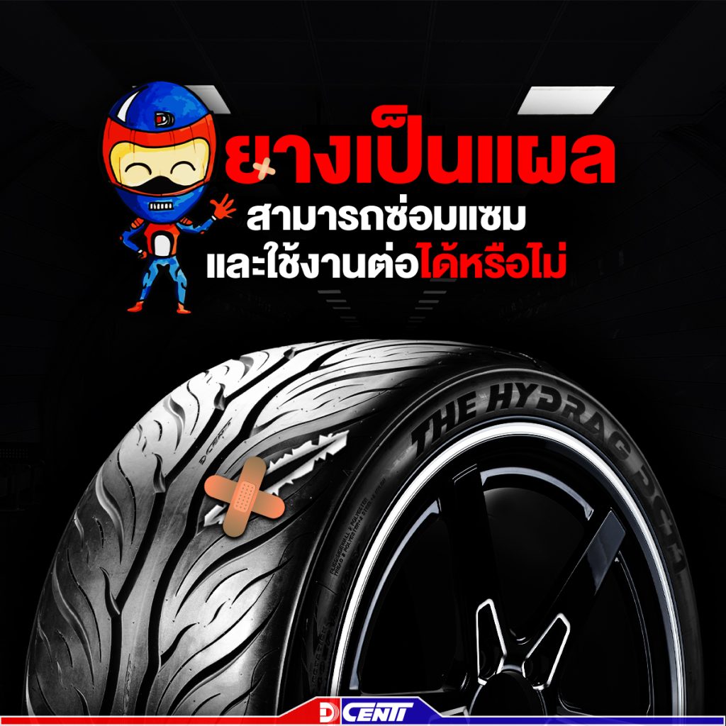 ในกรณีที่ยางเกิดบาดแผลจากการถูกตะปูแทงทะลุหรือถูกวัตถุมีคมบาดนั้น สามารถทำการซ่อมแซมความเสียหายได้ แต่การซ่อมแซมบาดแผลที่เกิดขึ้นสามารถทำได้เพียงแค่ 2 ตำแหน่งเท่านั้นและบาดแผลจะต้องมีระยะห่างกัน 40 เซนติเมตรขึ้นไป